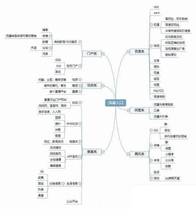 下面的图片能很清楚的知道一般网站的流量来源有多少渠道: