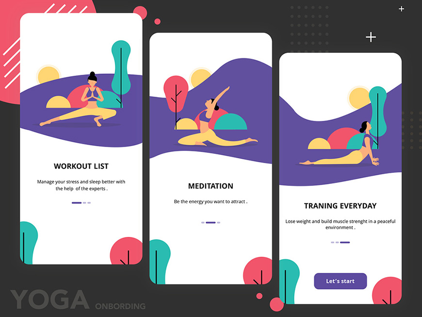 (图片来源:Dribbble上的 Yoga Onbording App by CMARIX TechnoLabs)