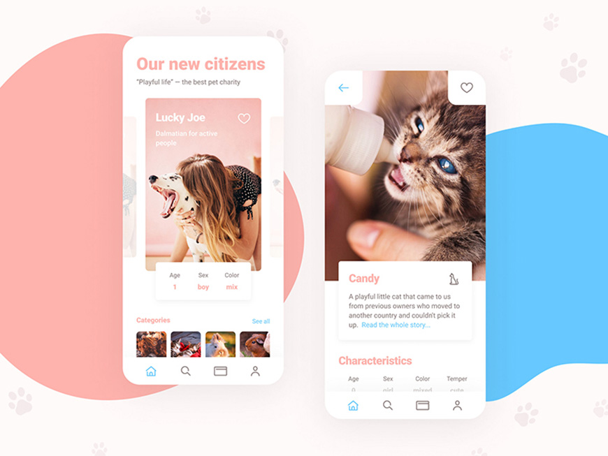 (图片来源:Dribbble上的 Pet charity application by Ihor Zubrytskyi)