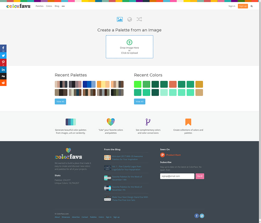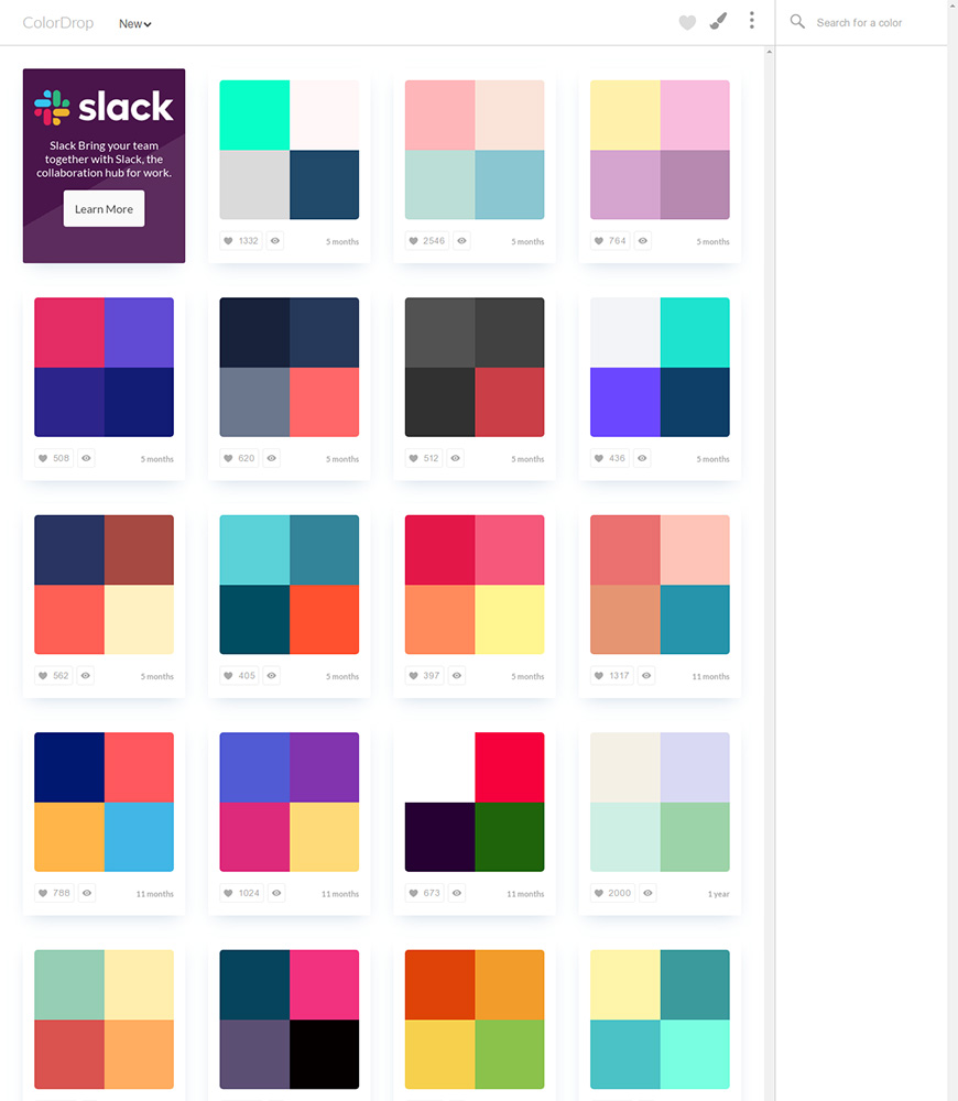 Colordrop 拥有极多的配色方案,除了四色组合,你也可以通过上传图片,来获取配色方案。(国外网站|可直接访问)