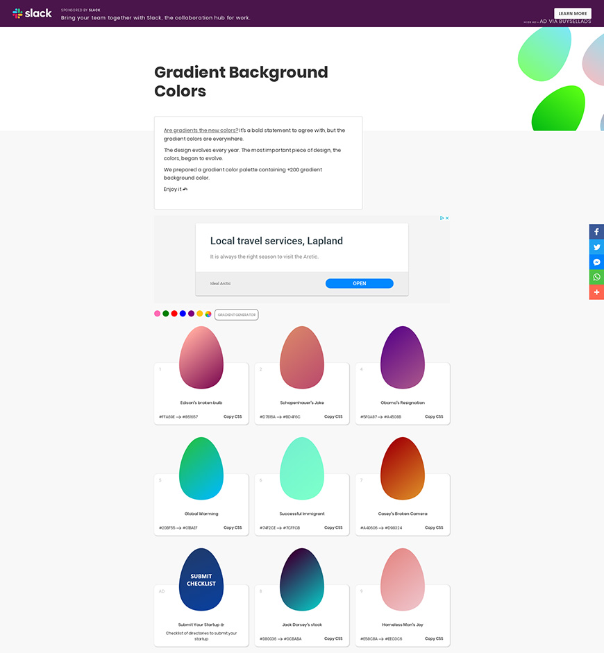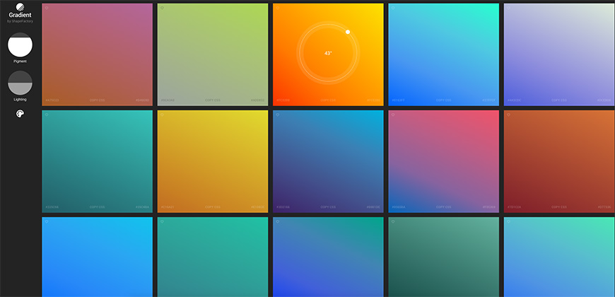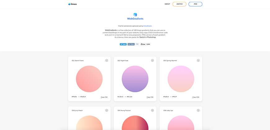 这个网站应该大家都比较熟悉了,网站中提供了180种线性渐变效果,每一组渐变效果都非常好看。(国外网站|可直接访问)